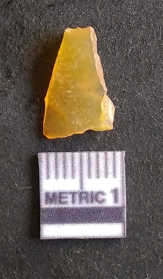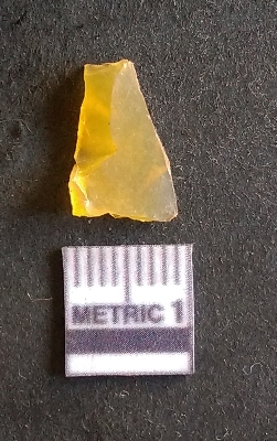 | Description / विवरण | The chalcedony flake is pale yellow in color. Translucent in appurtenance. The piece is shows sharp pointed ends and flake scars on the surface. As a result of flaking. |
