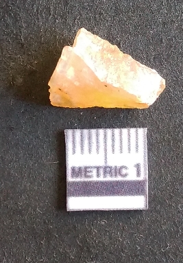 | Description / विवरण | The chalcedony flake is pale yellow in color. Translucent in appurtenance. The piece is shows sharp pointed ends and flake scars on the surface. As a result of flaking. |