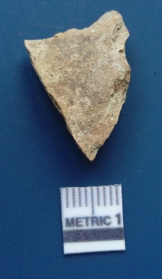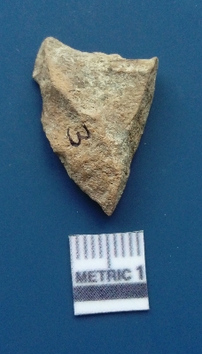 | Description / विवरण | The chert piece is dark in color, with a prominent bulb of percussion and sharp flaked edges. The piece is a part of lithic debitage or raw material for lithic knapping. The piece shows clear ripple marks and bulb of percussion. |