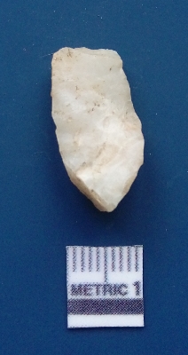 | Description / विवरण | The quartz flake has sharp flaked edges and pointed ends as a result of flaking. The piece is semi-transparent in nature with irregular fracture pattern. The piece is roughly triangular in shape and has a prominent bulb of percussion. |