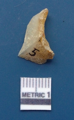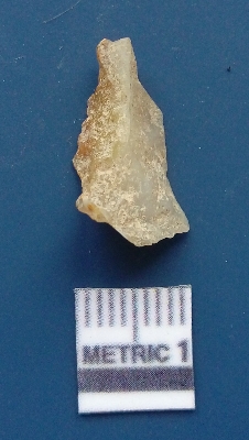 | Description / विवरण | It is chalcedony flake, translucent in appearance. The piece shows sharp pointed ends and flake scars on the surface as a result of flaking. The piece shows a bulb of percussion. |