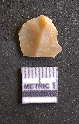 | Description / विवरण | The chalcedony flake is pale yellow in color. Translucent in appurtenance. The piece is shows sharp pointed ends and flake scars on the surface. As a result of flaking. |