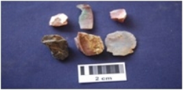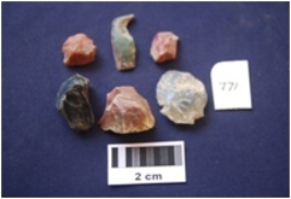 | Description / विवरण | Moss Agate 1 Chalcedony 1 Chert 4 Total No. of Debitage 6. Flakes and chunks, by-product of stone tool manufacturing. |