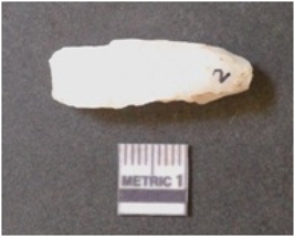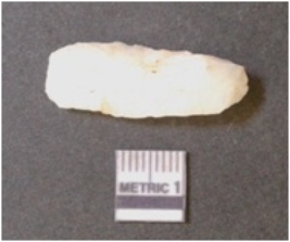 | Description / विवरण | The quartz flake has sharp flaked edges and pointed ends as a result of flaking. The piece is semi-transparent in nature with irregular fracture pattern. The piece is roughly triangular in shape and has a prominent bulb of percussion. |