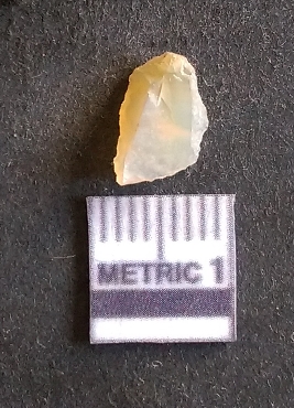 | Description / विवरण | The chalcedony flake is pale yellow in color. Translucent in appurtenance. The piece is shows sharp pointed ends and flake scars on the surface. As a result of flaking. |