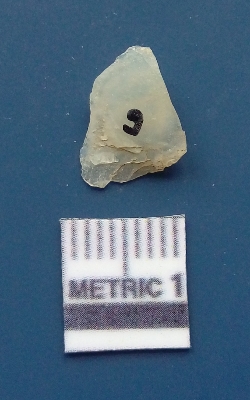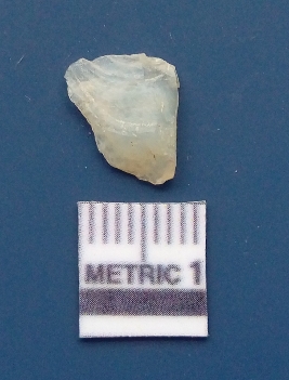 | Description / विवरण | The quartz flake has sharp flaked edges and pointed ends as a result of flaking. The piece is semi-transparent in nature with irregular fracture pattern. The piece is roughly triangular in shape and has a prominent bulb of percussion. |