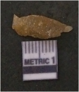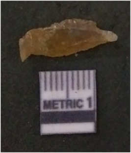 | Description / विवरण | It is chalcedony flake, translucent in appearance. The piece shows sharp pointed ends and flake scars on the surface as a result of flaking. The piece shows a bulb of percussion. |