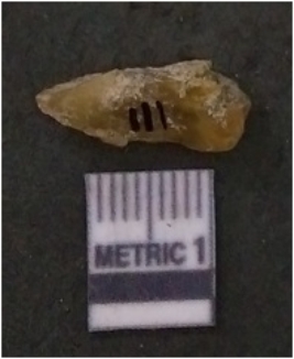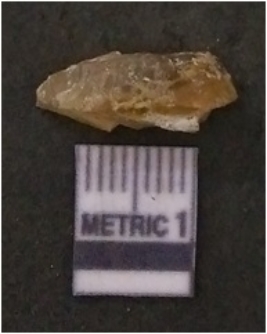 | Description / विवरण | It is chalcedony flake, translucent in appearance. The piece shows sharp pointed ends and flake scars on the surface as a result of flaking. The piece shows a bulb of percussion. |