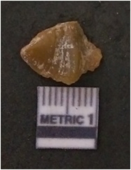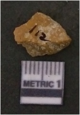 | Description / विवरण | It is chalcedony flake, translucent in appearance. The piece shows sharp pointed ends and flake scars on the surface as a result of flaking. The piece shows a bulb of percussion. |