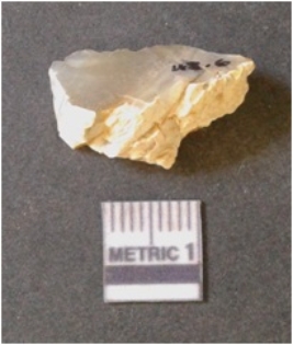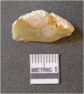 | Description / विवरण | It is chalcedony flake, translucent in appearance. The piece shows sharp pointed ends and flake scars on the surface as a result of flaking. The piece shows a bulb of percussion. |