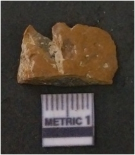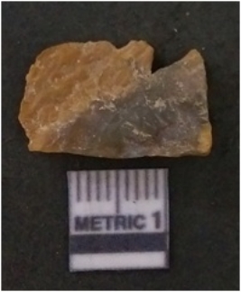 | Description / विवरण | It is chalcedony flake, translucent in appearance. The piece shows sharp pointed ends and flake scars on the surface as a result of flaking. The piece shows a bulb of percussion. |