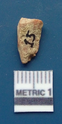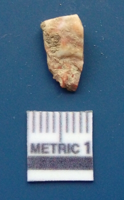 | Description / विवरण | The flake has irregular fracture pattern and sharp flaked edges as a result of lithic knapping activity. The piece is pale, with surfacial flake scars and a bulbous end. The quartz flake is rosy white in colour. |