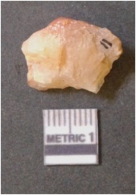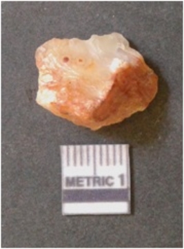 | Description / विवरण | It is chalcedony flake, translucent in appearance. The piece shows sharp pointed ends and flake scars on the surface as a result of flaking. The piece shows a bulb of percussion. |