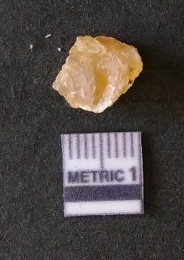 | Description / विवरण | The chalcedony flake is pale yellow in color. Translucent in appurtenance. The piece is shows sharp pointed ends and flake scars on the surface. As a result of flaking. |