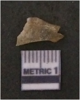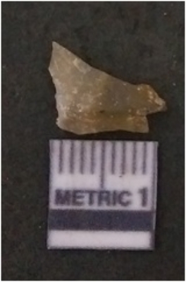 | Description / विवरण | The flake has irregular fracture pattern and sharp flaked edges as a result of lithic knapping activity. The piece is pale, with surfacial flake scars and a bulbous end. The flake is of smoky quartz variety, grayish in colour and translucent in appearance. |
