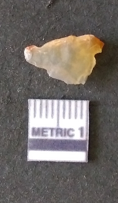 | Description / विवरण | The chalcedony flake is pale yellow in color. Translucent in appurtenance. The piece is shows sharp pointed ends and flake scars on the surface. As a result of flaking. |
