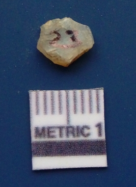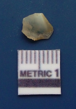 | Description / विवरण | The flake has irregular fracture pattern and sharp flaked edges as a result of lithic knapping activity. The piece is pale, with surfacial flake scars and a bulbous end. The flake is of smoky quartz variety, grayish in colour and translucent in appearance. |