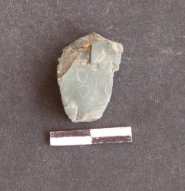 | Description / विवरण | It s a greenish chert fragment. Very cryptocrystalline. Flakes scar on the surface with ripples on it. |