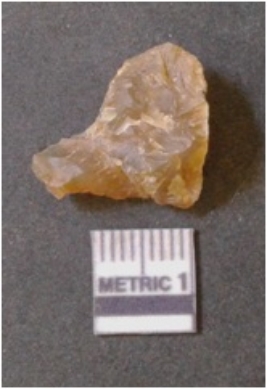 | Description / विवरण | It is chalcedony flake, translucent in appearance. The piece shows sharp pointed ends and flake scars on the surface as a result of flaking. The piece shows a bulb of percussion. |
