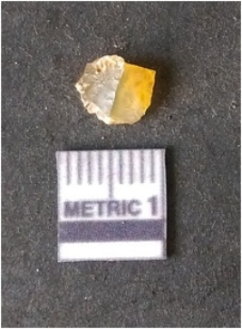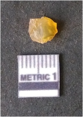 | Description / विवरण | It is chalcedony flake. Translucent in appurtenance. The piece is shows sharp pointed ends and flake scars on the surface. As a result of flaking. |