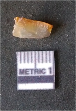 | Description / विवरण | It is chalcedony flake. Translucent in appurtenance. The piece is shows sharp pointed ends and flake scars on the surface. As a result of flaking. |