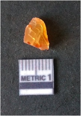 | Description / विवरण | It is chalcedony flake. Translucent in appurtenance. The piece is shows sharp pointed ends and flake scars on the surface. As a result of flaking. |