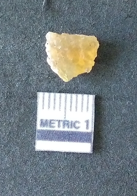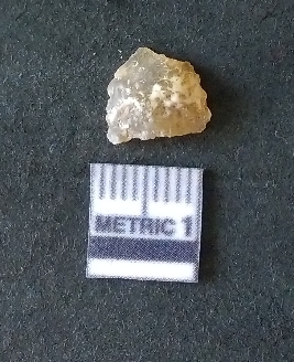 | Description / विवरण | The quartz fragment shows prominent flaks scars and sharp flaked ends as a result of flaking. The piece is translucent white and shows cryptocrystalline matrix. |