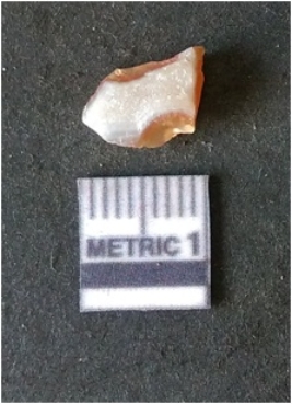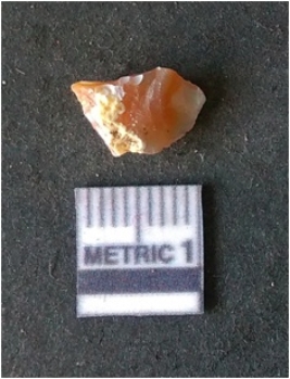 | Description / विवरण | It is chalcedony flake. Translucent in appurtenance. The piece is shows sharp pointed ends and flake scars on the surface. As a result of flaking. |