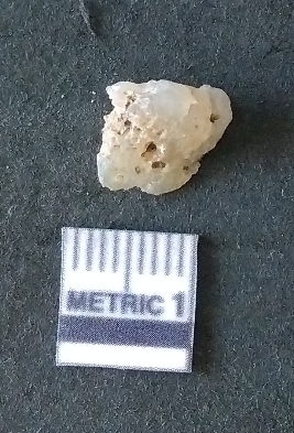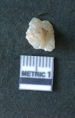 | Description / विवरण | The quartz fragment shows prominent flaks scars and sharp flaked ends as a result of flaking. The piece is translucent white and shows cryptocrystalline matrix. |