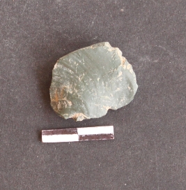 | Description / विवरण | It s a green chert fragment. Flakes scar on the surface with ripples on it. |