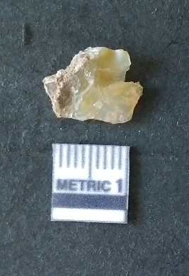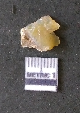 | Description / विवरण | The chalcedony flake is pale yellow in color. Translucent in appurtenance. The piece is shows sharp pointed ends and flake scars on the surface. As a result of flaking. |