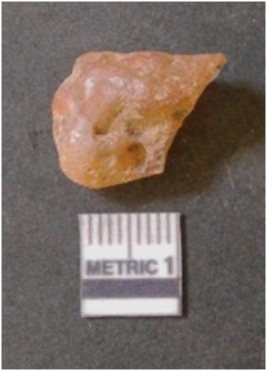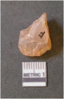 | Description / विवरण | It is chalcedony flake, translucent in appearance. The piece shows sharp pointed ends and flake scars on the surface as a result of flaking. The piece shows a bulb of percussion. |