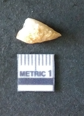 | Description / विवरण | The chalcedony flake is pale yellow in color. Translucent in appurtenance. The piece is shows sharp pointed ends and flake scars on the surface. As a result of flaking. |