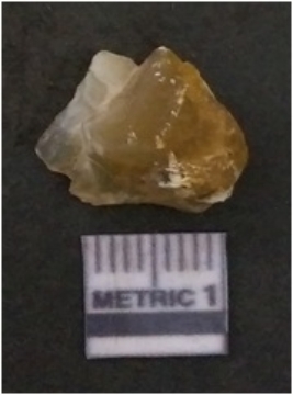 | Description / विवरण | The banded agate piece is crystalline in nature, with a smooth fracture pattern and visible bands on the flaked sides. The piece is pale in color and has sharp flaked ends. |