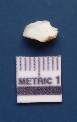 | Description / विवरण | The quartz flake has sharp flaked edges and pointed ends as a result of flaking. The piece is semi-transparent in nature with irregular fracture pattern. The piece is roughly triangular in shape and has a prominent bulb of percussion. |
