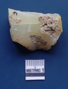 | Description / विवरण | It is chalcedony flake, translucent in appearance. The piece shows sharp pointed ends and flake scars on the surface as a result of flaking. The piece shows a bulb of percussion. |