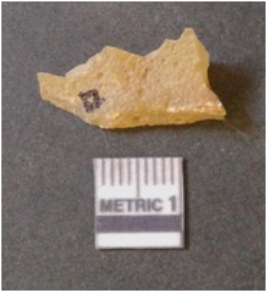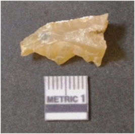 | Description / विवरण | It is chalcedony flake, translucent in appearance. The piece shows sharp pointed ends and flake scars on the surface as a result of flaking. The piece shows a bulb of percussion. |
