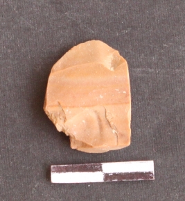 | Description / विवरण | It s a chert piece with sharp edges and striking platform on the proximal end. Flakes scars on the surface with ripples on it. |