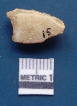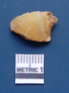 | Description / विवरण | It is chalcedony flake, translucent in appearance. The piece shows sharp pointed ends and flake scars on the surface as a result of flaking. The piece shows a bulb of percussion. |