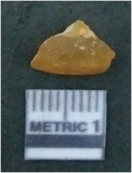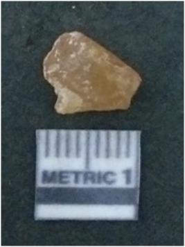 | Description / विवरण | It is chalcedony flake, translucent in appearance. The piece shows sharp pointed ends and flake scars on the surface as a result of flaking. The piece shows a bulb of percussion. |