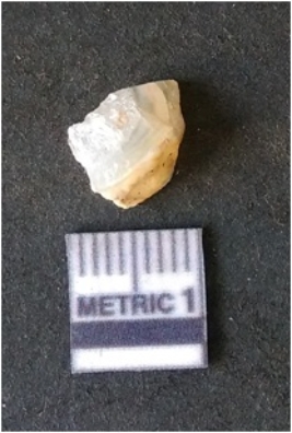 | Description / विवरण | It is chalcedony flake. Translucent in appurtenance. The piece is shows sharp pointed ends and flake scars on the surface. As a result of flaking. |