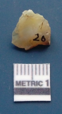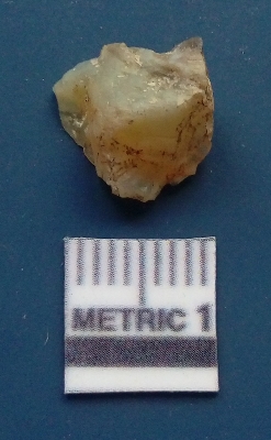| Description / विवरण | It is chalcedony flake, translucent in appearance. The piece shows sharp pointed ends and flake scars on the surface as a result of flaking. The piece shows a bulb of percussion. |