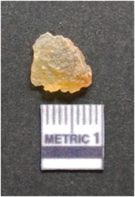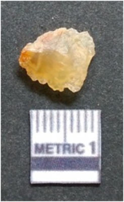 | Description / विवरण | It is chalcedony flake, translucent in appearance. The piece shows sharp pointed ends and flake scars on the surface as a result of flaking. The piece shows a bulb of percussion. |
