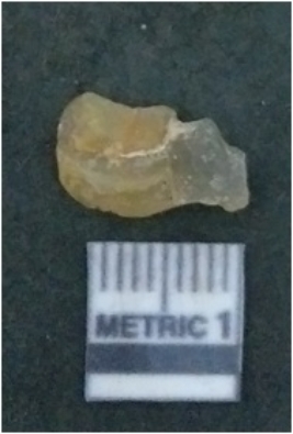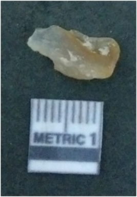 | Description / विवरण | It is chalcedony flake, translucent in appearance. The piece shows sharp pointed ends and flake scars on the surface as a result of flaking. The piece shows a bulb of percussion. |