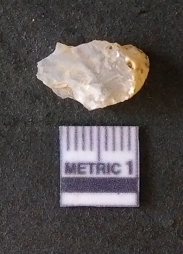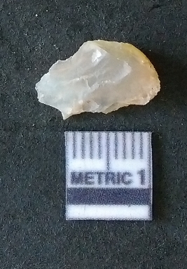 | Description / विवरण | The quartz fragment shows prominent flaks scars and sharp flaked ends as a result of flaking. The piece is translucent white and shows cryptocrystalline matrix. |