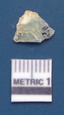 | Description / विवरण | It is chalcedony flake, translucent in appearance. The piece shows sharp pointed ends and flake scars on the surface as a result of flaking. The piece shows a bulb of percussion. |