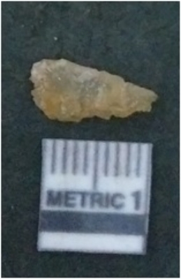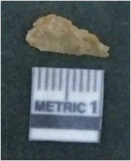 | Description / विवरण | It is chalcedony flake, translucent in appearance. The piece shows sharp pointed ends and flake scars on the surface as a result of flaking. The piece shows a bulb of percussion. |