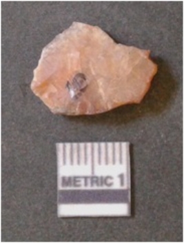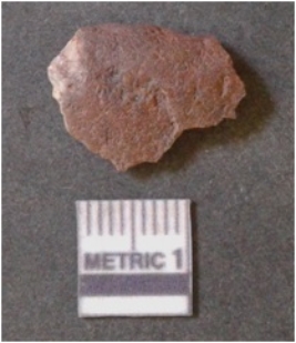 | Description / विवरण | The chert piece is dark in color, with a prominent bulb of percussion and sharp flaked edges. The piece is a part of lithic debitage or raw material for lithic knapping. The piece shows clear ripple marks and bulb of percussion. |
