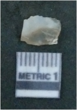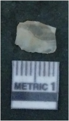 | Description / विवरण | It is chalcedony flake, translucent in appearance. The piece shows sharp pointed ends and flake scars on the surface as a result of flaking. The piece shows a bulb of percussion. |