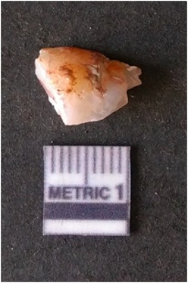 | Description / विवरण | It is chalcedony flake. Translucent in appurtenance. The piece is shows sharp pointed ends and flake scars on the surface. As a result of flaking. |